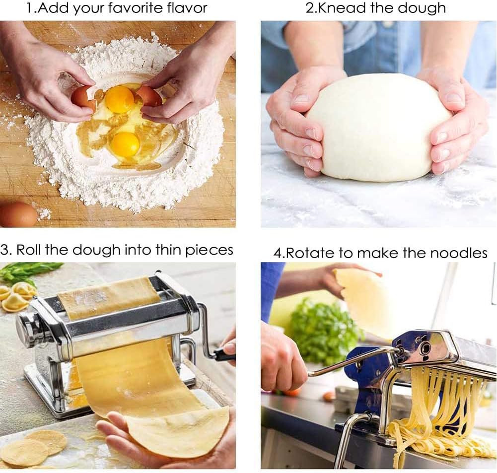 - ✔ Healthy and fresh: with the manual pasta machine, and according to your taste, make different noodles yourself, such as noodles, lasagna, fettucine, spaghetti, ribbon noodles, tagliatelle, ravioli, cannelloni or lasagna plates. That tastes good!