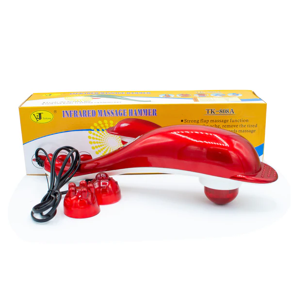 The 3-In-1 Dolphin Massager is a portable and convenient percussion massager for your entire body. It weighs only 2.5 LB. It has 3 interchangeable he
