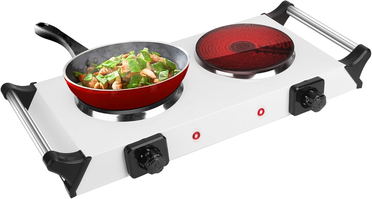 - **⚡ Quick & Even Heating:** Equipped with dual 5.5-inch coil heating elements and 2000W power, this electric stove heats up quickly and cooks food evenly without hot or cold spots. Use one burner to boil water and the other to prepare meals simultaneously, saving you time and effort in the kitchen.