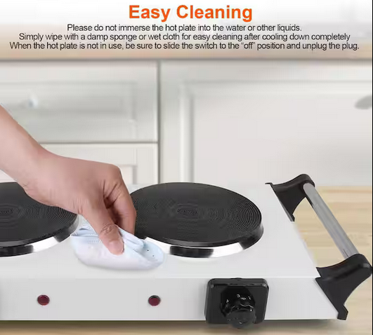 - **🚪 Compact & Portable Design:** Featuring stay-cool side handles and a lightweight, space-saving design, this electric stove is easy to carry and store. Ideal for small apartments, dorm rooms, RVs, and outdoor camping. Built with durable iron and a protective coating for long-lasting performance.
